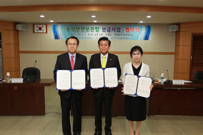 강화군은(군수 유천호) 생명보험사회공헌재단 및 한국자살예방협회와 농촌지역 노인들의 자살예방 및 생명존중 문화조성을 위해 5월 8일「농약안전보관함 보급사업」협약식을 가졌다.