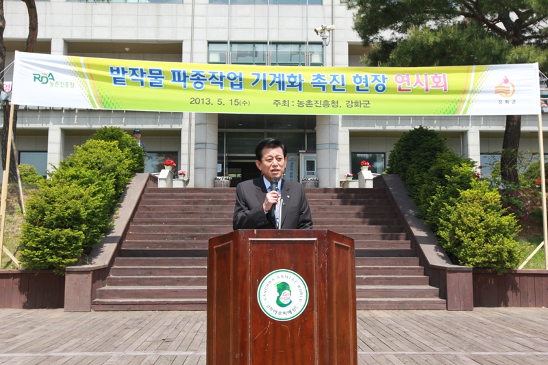 강화군(군수 유천호)은 지난 5월 15일 농촌진흥청 국립농업과학원과 공동으로 농촌진흥 유관기관 관계자, 농업기계 생산업체, 농업인 등 200여명이 참석한 가운데 강화군농업기술센터에서 밭작물 파종기계의 영농현장 연시회를 개최했다.