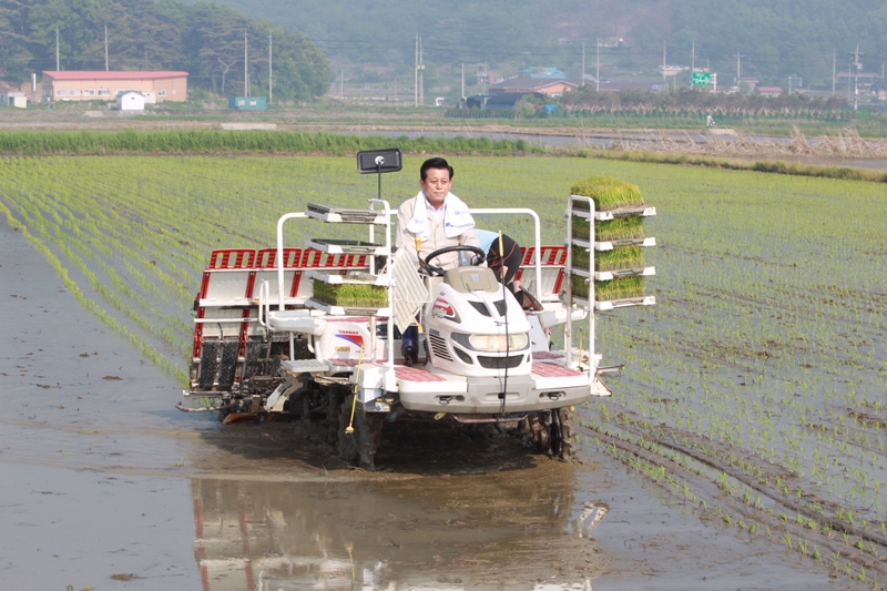 이날 행사에는 유천호 군수를 비롯해 농업인 및 영농단체장 등이 참석했으며, 유 군수는 직접 승용이앙기를 운전, 모를 내고 농업인들을 위로하며 어려움과 애로사항을 청취했다.