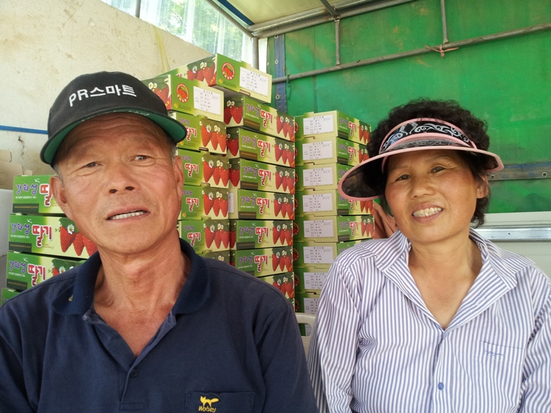 강화군 길상면 장흥리는 10여 농가가 도로변을 중심으로 10,000㎡정도 노지딸기를 재배하여 직거래를 하고 있는데 고갑순(69세)농가도 그중에 하나이다. 도로변에서 농산물 직거래를 시작한 그는 5~6월 노지에서 고소득을 올릴 수 있으면서 관광객이 좋아할 만한 작물로 딸기를 선택했다. 전년도의 경우 1,650㎡의 노지딸기를 재배하여 2천만 원 정도의 매출을 올렸다. 올해는 2,300㎡정도 재배하였는데 이상저온으로 수확시기가 예년에 비해 5~7일정도 늦은 6월 초부터 수확을 시작하였다. 같은 밭에 이어지을 경우 장애가 발생할 수 있어 돌려짓기를 하여 품질과 수량을 유지에 힘쓰고 있다. 딸기 이외에 고구마, 고추, 토마토 등 밭작물을 1ha정도 재배, 100% 직거래를 하여 6천만 원 정도의 소득을 올리고 있으며 단골고객만도 500명이 넘는다. 그는 딸기연구회 부회장인 부인 정순자(62세)씨와 둘이서 농산물 생산에서 판매까지 어른 5~6명이 해야 할 일을 소화하는 1인 3역을 맡고 있으며 바쁜 주말이면 아들 며느리가 도와주는 가족위주의 경영으로 경영비를 줄이는 억척 농사꾼이기도 하다. 새콤달콤 싱싱한 노지딸기 맛을 많은 사람들에게 선보이는 것이 현재의 바람이라는 그는 관이나 농협에서 적극적인 홍보로 딸기농가에 힘이 되어주길 원한다.