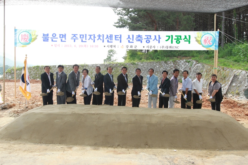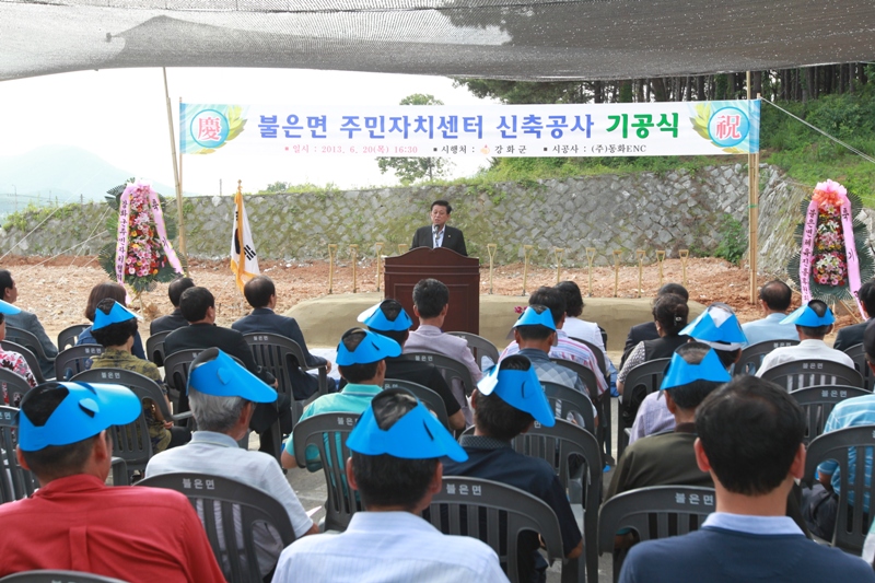 강화군 불은면사무소(면장 남궁인)에서는 6월 20일(목) 유천호 강화군수, 구경회 군의회 의장 등이 100여명이 참석한 가운데 불은면 주민자치센터 기공식을 개최했다.