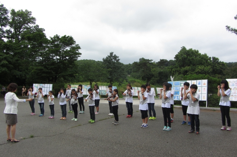 이날 개막식 식전행사로 불은초등학교와 삼성초등학교 어린이들이 열심히 갈고닦은 오카리나와 바이올린 등의 연주를 선보여 많은 박수를 받았다.