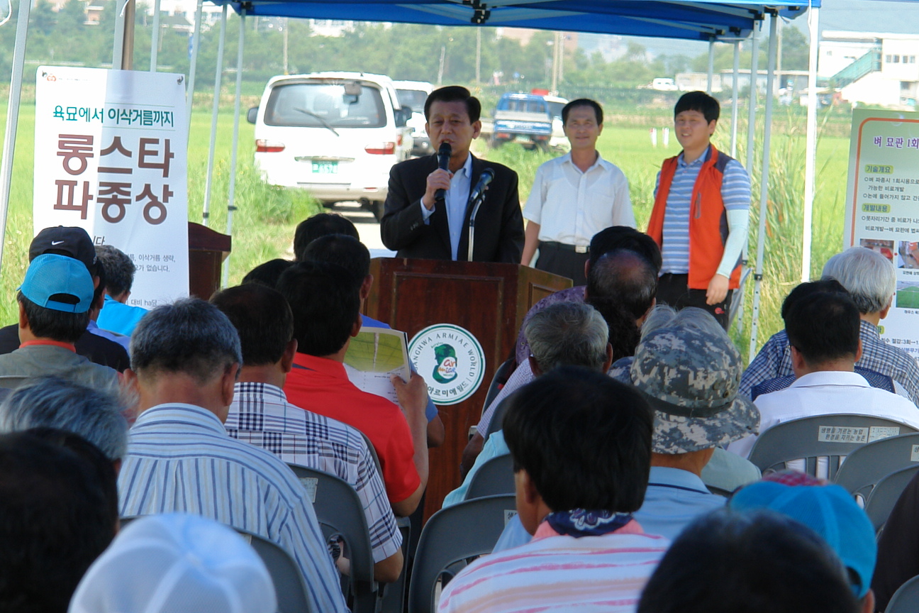 지난 8월 1일 길상면 초지리 초지뜰에서 유천호 강화군수를 비롯해 쌀작목연합회 임원 등 70여명이 참석한 가운데 한 번 살포하면 추수 때까지 비료가 필요 없는 온실 가스 저감 저탄소 비료인 파종상비료 중간평가ㆍ현장교육을 가졌다.