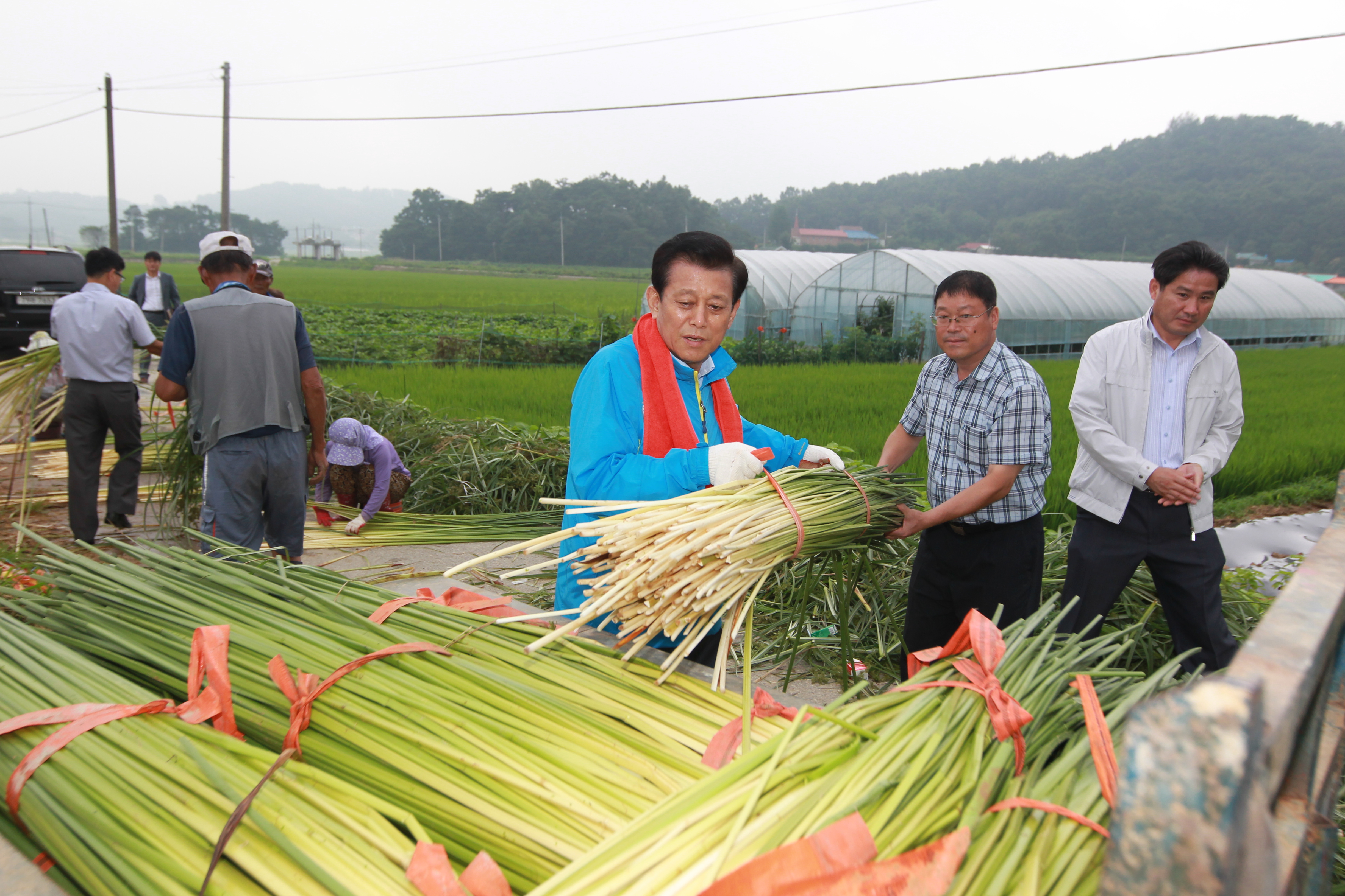 유천호 강화군수는 지난 8월 5일 송해면 당산리 이환웅 농가를 방문하여 왕골수확 작업을 도우며 왕골 재배농가의 애로사항을 청취하고 격려하는 자리를 가졌다.