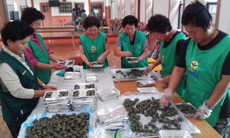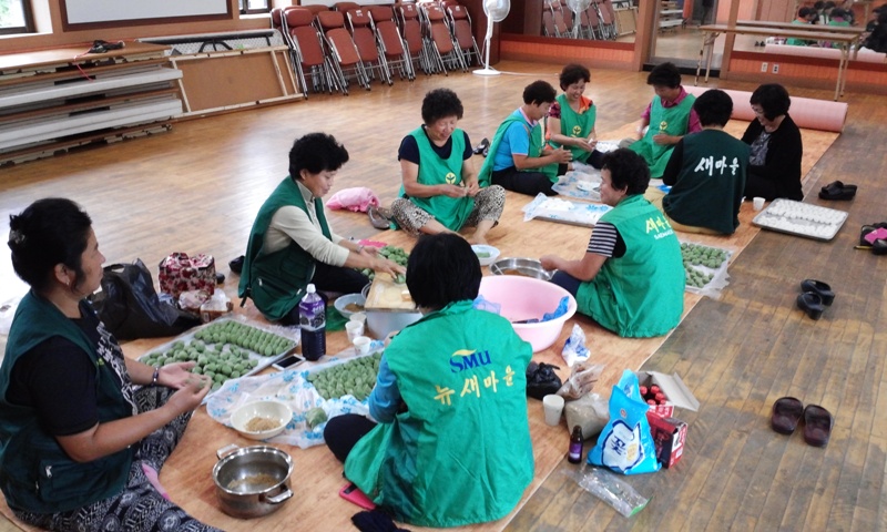 이날 행사는 14개리 부녀회장들이 참석한 가운데 주민자치센터에서 미리 준비한 재료로 송편을 빚고 솔잎을 따서 받쳐놓고 정성스럽게 송편을 만들었으며 먹음직스럽게 만든 송편은 각리에서 어렵게 생활하고 있는 독거노인 50가구를 부녀회장들이 직접 전달도 했다.