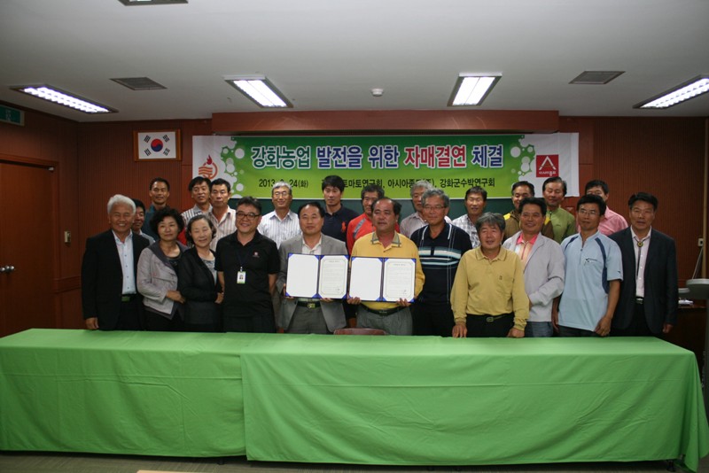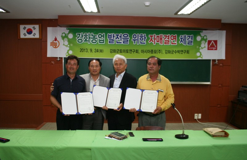 강화군 소득작목 발전의 견인차 역할을 하고 있는 강화군토마토연구회와 수박연구회는 지난 24일 농업기술센터에서 아시아종묘와 자매결연 협약을 체결했다.