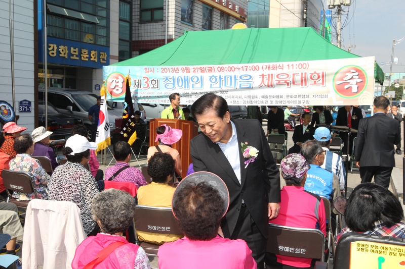 인천시 강화군 장애인 총연합회(회장 오병혁, 김영민)가 주관한 제3회 강화군 장애인 한마음 체육대회가 9월 27일 장애인회관 게이트볼 장에서 유천호 강화군수 및 지역주민, 장애인 등 약 400여명이 참석한 가운데 열렸다.