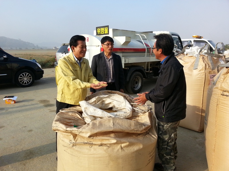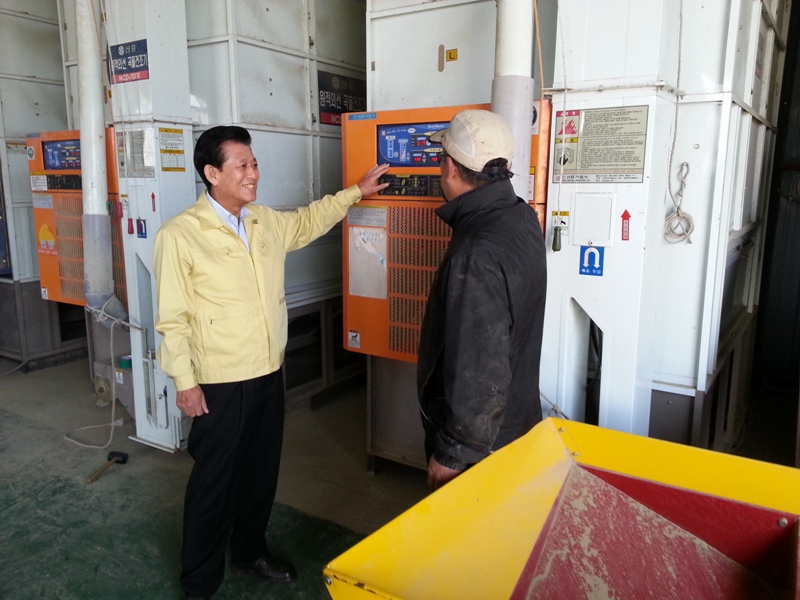 유천호 강화군수는 지난 10월 10일(목) 이른 아침부터 벼를 수확 후 건조하는 농가들의 현장으로 찾아가 벼 적기 수확 및 적온건조를 통해 강화섬 쌀의 명품화를 위해 노력해 달라고 격려했다.