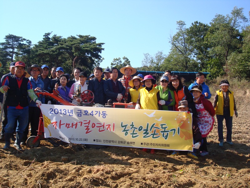 이날 고구마 캐기 체험은 정병섭 금호가4동 동장님과 봉윤덕 위원장님의 적극적인 협조로 이루어 졌으며 단순한 체험을 넘어 두 단체간의 우호증진과 상생의 협력을 모색코자 노력한 결과의 산물이며, 영원한 친구처럼 이날의 행사 외에도 축제등 다방면에서 교류를 더욱 활성화 해 나가기로 했다.