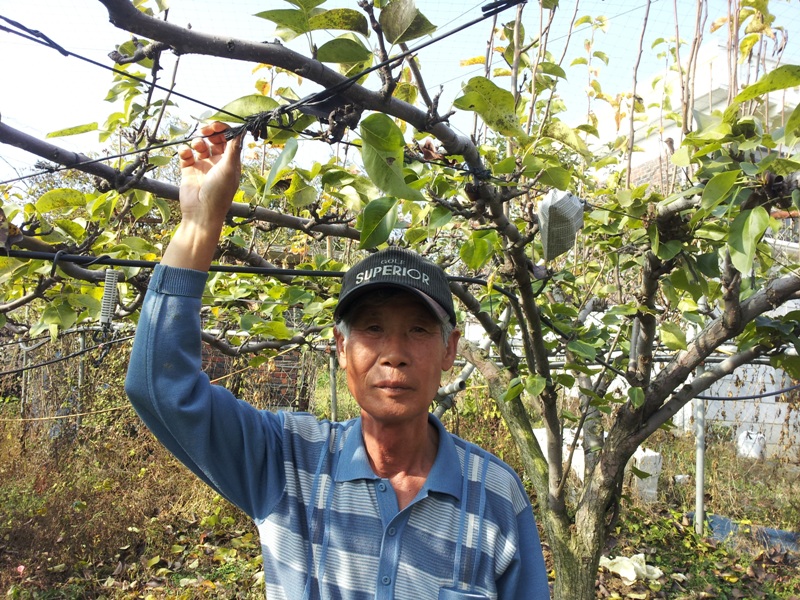 그가 운영하는 과수원은 7,600㎡ 정도인데 입구에는 품종명이 없다는 독특한 그만의 배나무가 몇 그루 있고, 새로운 기술을 적용해보는 실험나무 등 다른 농가에는 없는 것 들이 배치되어 있다. 재배에서도 그가 지키는 몇 가지 원칙을 적용하고 있는데, 그만의 비법으로 조제한 3년 이상 부숙한 퇴비를 이용하고 과실수확 후에는 수세회복을 위해 시간차를 두고 2~3회 다른 거름을 준다. 재배기술도 중요하지만 그가 과실 품질을 위해 중점을 두는 것은 따로 있는데 그것은 나무에 대한 무한한 관심과 표현이다. 외출하고 들어오거나 기회가 있을 때마다 봉지 씌운 과일을 살살 쓰다듬어 주는데 그 효과는 어떤 재배기술도 따라올 수 없다고 한다.