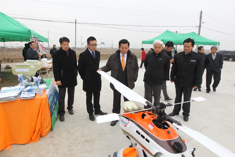 지난 12월 5일(목) 삼산면농촌지도자회(회장 이원표) 주관으로 농업기술센터에 교육 요청을 하여『삼산면 농기계 신기종 연시 및 현장교육』을 삼산면농업인상담소에서 개최하였다. 삼산면 농업인 150여명이 참석한 가운데 무인항공방제 및 자주형콩탈곡기 농기계 시연회를 가졌다.