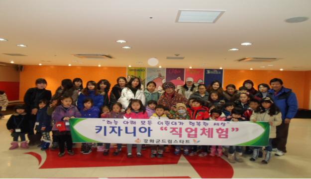 강화군 드림스타트는 지난 28일 취학전 드림스타트아동 70명을 대상으로 꿈과 상상력을 실현시켜 주는 직업체험 테마파크인 “키자니아”에서 진로지도 프로그램을 운영해 큰 호응을 얻고 있다.