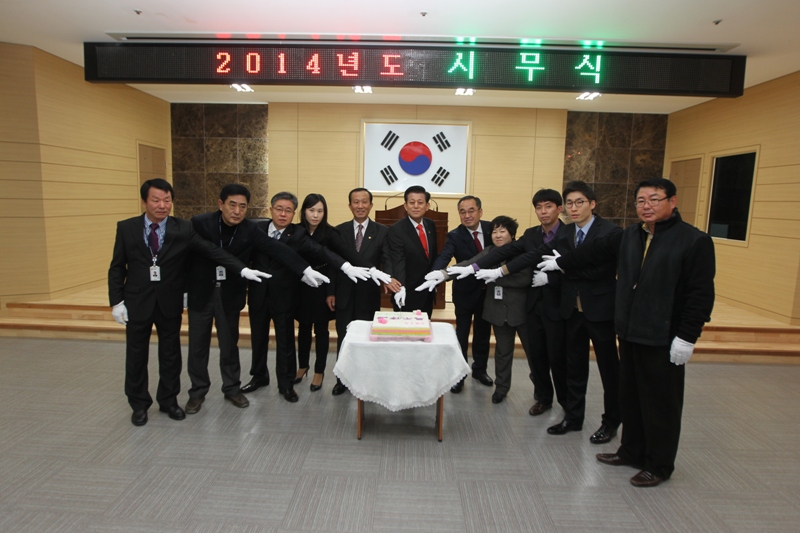 시무식은 마부정제(馬不停蹄)라는 문구가 새겨진 새해맞이 떡을 유천호 강화군수, 목민관(5급이상 간부공무원 모임) 및 백일홍(여직원 모임) 대표 등과 함께 절단식을 갖고 강화군 전 직원이 갑오년 한 해 강화군의 지속적인 발전을 위해 군민과 함께 더욱 정진하자는 다짐을 했다.