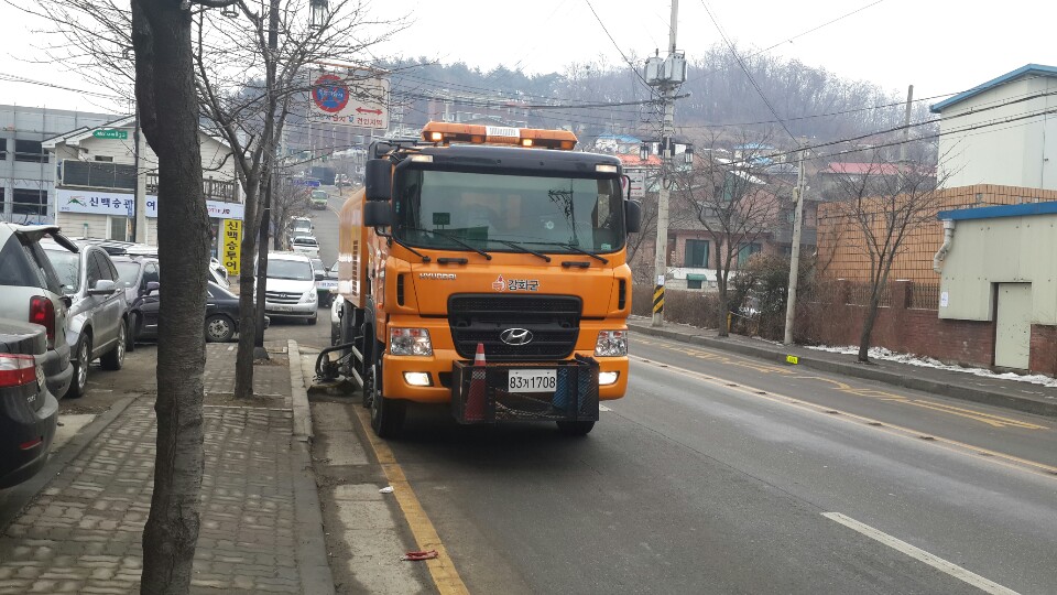 (사진 : 차량을 이용한 노면 청소모습)