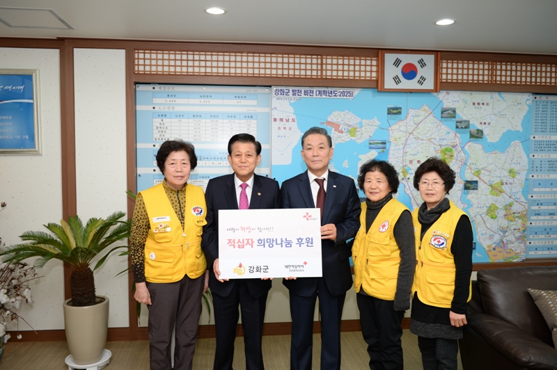 강화군은 1월 27일(월) 대한적십자사 인천지사 회장 및 임원들과 면담을 하고 주민들이 자발적인 참여 분위기를 조성하기 위해 2014년도 적십자 특별회비 100만원을 전달했다.