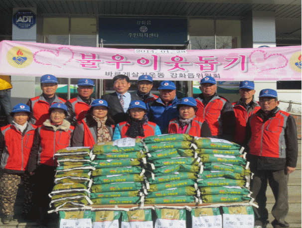 강화읍 바르게살기 위원회는 형편이 어려운 이웃 40가구에 집안청소와 함께 쌀 10kg씩을 직접 전달하며 앞으로도 어려운 이웃들을 위한 지속적인 관심을 가져 소외되고 외로운 이웃이 없도록 노력해 나갈 것을 다짐했다.