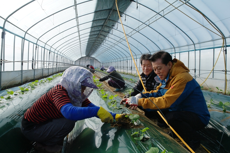 유천호 강화군수는 지난 2월 15일 불은면 삼성리 비닐하우스단지를 방문하고 오이를 정식하고 있는 농업인들을 격려했다.