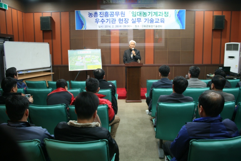 ○ 농업·농촌 미래를 주도할 핵심인력 양성을 위하여 실시하는 전국농기계담당자 2014년 전국 농촌진흥공무원 대상『임대농기계과정』우수지역 농기계은행 현장교육에 2월 26일 강화군농기계은행을 방문하여 농기계임대사업 현장실무교육 및 관리운영 등을 교육 청취를 하였다.