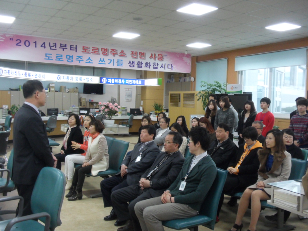 ○ 이날 교육은 최근 직원들의 인사이동에 따라 민원실 근무자 3개부서 43명을 대상으로 신속·정확한 민원처리로 신뢰받는 공직자상을 구현하는데 중점을 두었으며, 민원인에게 새주소 사업에 대한 안내도 홍보하기로 했다.