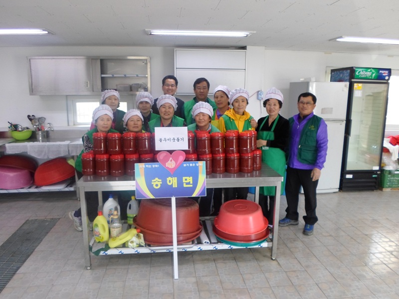 지난 4월 1일 송해면 남녀새마을지도자협의회(협의회장 장석찬, 부녀회장 추순임)는 한자리에 모여 고추장을 정성껏 담가 관내 50여 가구에 전달해 훈훈한 감동을 주고 있다.