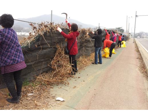이날 대청소는 농사 준비로 발생된 폐비닐과 하천에 방치된 생활 쓰레기는 물론 가로경관을 저해하는 넝쿨 제거도 함께 이루어졌다.