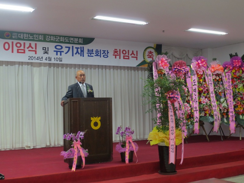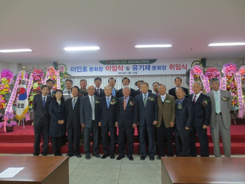 대한노인회 강화군지회 화도면분회장 이·취임식이 4월 10일 화도농협 강당에서 화도면 각 기관·단체장을 비롯하여 대한노인회 강화군지부 박용렬 회장과 각 읍·면 분회장, 그리고 화도면 관내 24개 경로당 회장 총무 등 100여명이 참석한 가운데 개최됐다.