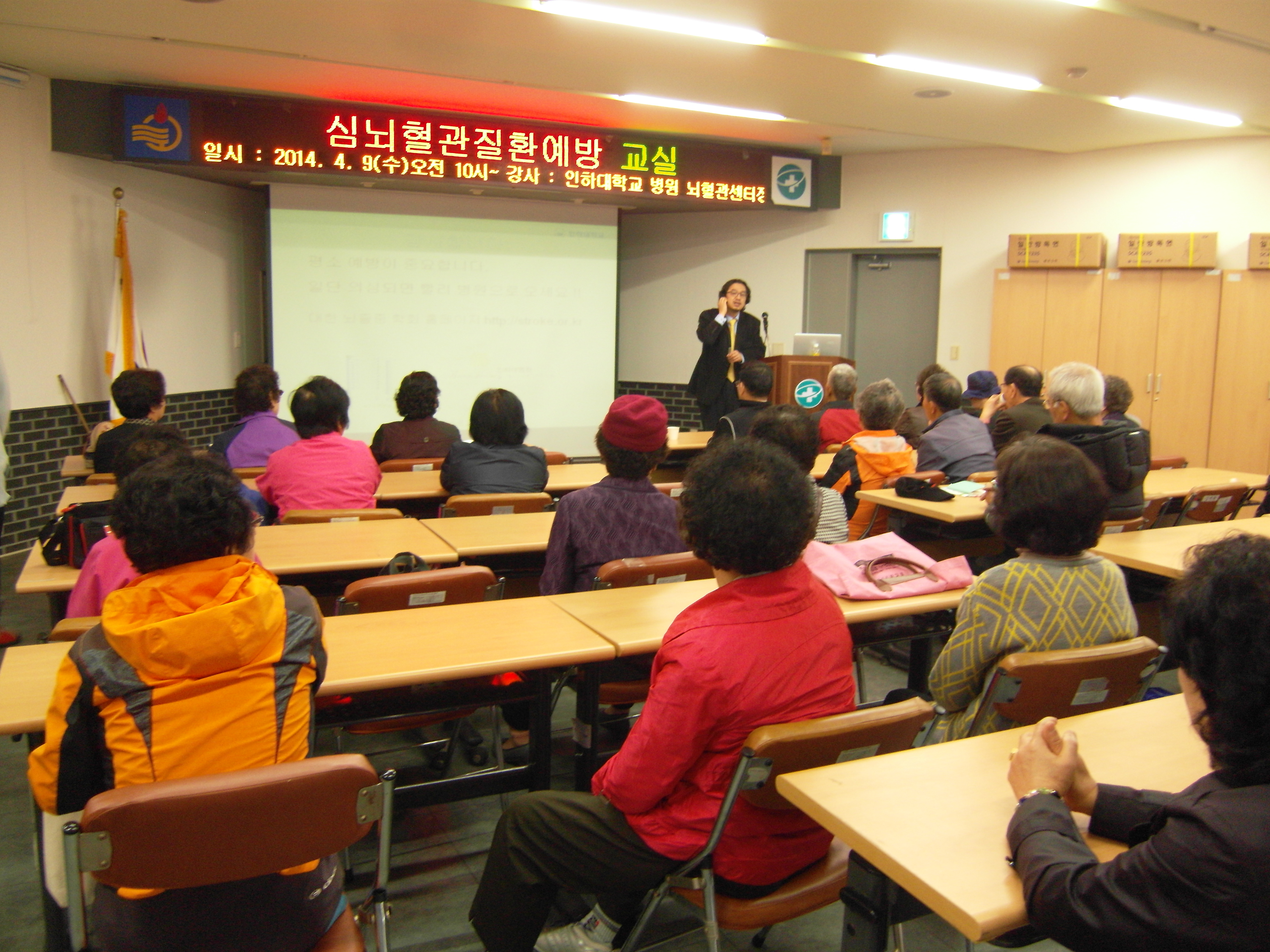 강화군은 심·뇌혈관질환 예방관리를 위한『심뇌혈관질환예방교실』을 4월 9일 개강했다고 밝혔다. 첫날에는 참여자 50여명을 대상으로 기초건강검사를 실시한 후 인하대학교 뇌혈관센터장인 나정호 교수의 뇌졸중의 증상, 진단, 치료 및 예방에 관한 강의와 지역주민들과의 질의 응답 시간을 가져 참여자들의 궁금증을 해소해 주었다. 나정호 교수는 뇌졸중의 5대증상인 편측마비, 언어장애, 시각장애, 어지럼증, 심한두통이 있을 시엔 즉시 119를 불러 가까운 병원을 방문할 것을 강조하였다.