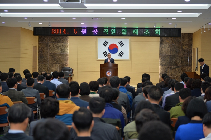 월례조회는 국민의례, 공무원윤리헌장 낭독, 표창장 및 표창패 수여, 5월중 군정 역점시책 훈시 등으로 진행됐다.