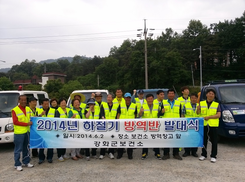 강화군에서는 이른 무더위 속에 모기 등을 인한 말라리아 예방을 위해 하절기 방역시작을 알리는 2014년 하절기 방역반 발대식을 6월 2일에 실시했다.