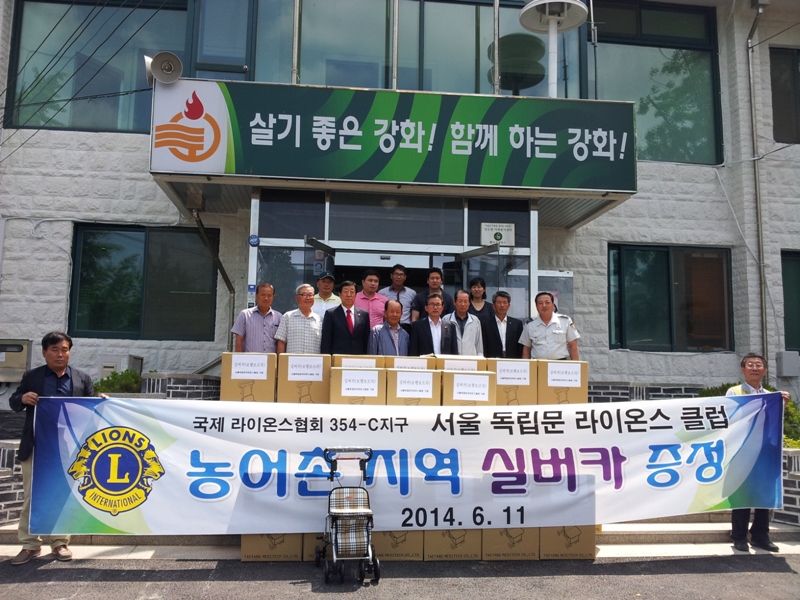 서울독립문라이온스클럽(회장 한광호)은 보행이 불편해 외출이 어려운 노인 분들에게 전달해 달라며 실버카(보행 보조차) 30대(6백만 원 상당)를 양도면에 전달했다.