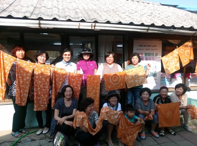 김문숙씨(강화섬 체험학교장)의 지도로 진행된 교동 평화의 섬 물들이기는, 땅에서 하늘까지 평화로 물을 들인다는 의미를 살려 첫 번째로 땅의 색인 황토색으로 물을 드리었다. 두 번째 물들이기 행사는 하늘색인 쪽빛으로 물을 드릴 예정이다.