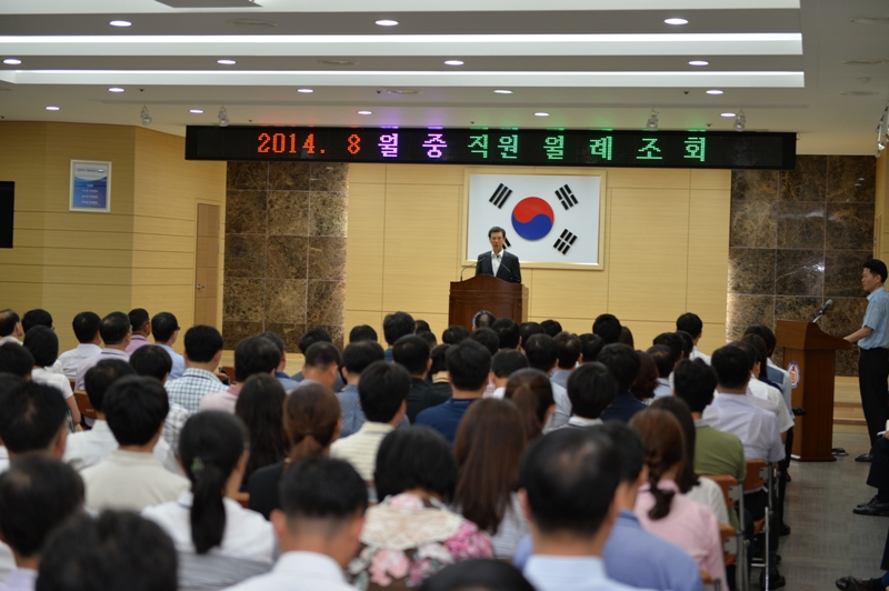 월례조회는 국민의례, 공무원 윤리헌장 낭독, 모범시민 및 우수공무원에 대한 표창을 전수 및 수여하고 이어 8월중 군정 역점시책 훈시 등으로 진행됐다.