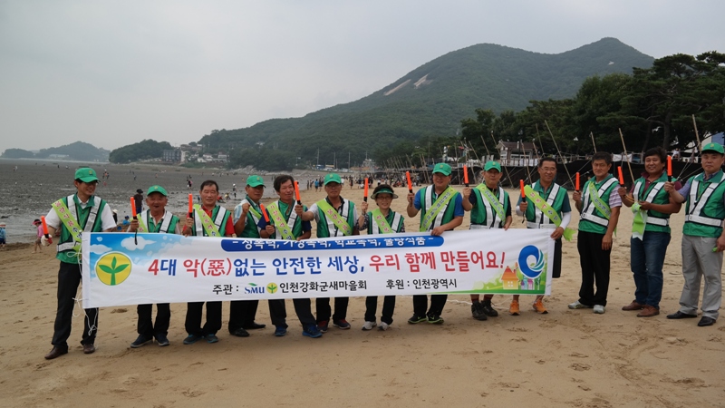 이 날 캠페인은 관광객이 유입이 많은 화도 동막해변에서 ‘성폭력, 가정폭력, 학교폭력, 불량식품‘ 등 4대악을 근절하여 살맛나는 우리 동네 지킴이 역할을 할 것을 다짐하며 캠페인을 실시했다.