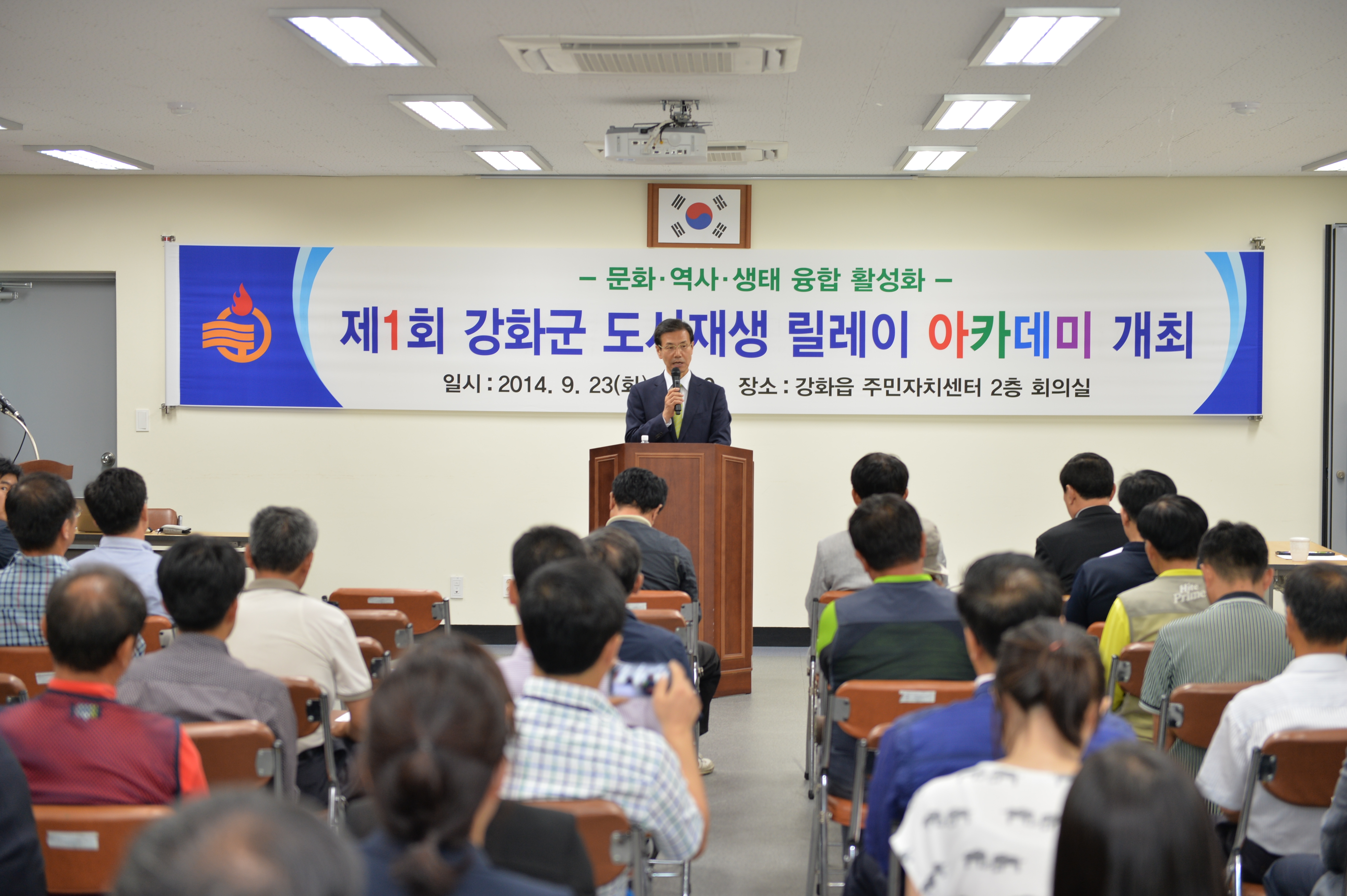 강화군 원도심 도시재생 활성화를 위한 주민교육 프로그램의 일환으로 제1회 강화군 도시재생 릴레이 아카데미가 지난 23일(화) 오후 4시 강화읍 주민자치센터 2층 회의실에서 열렸다.