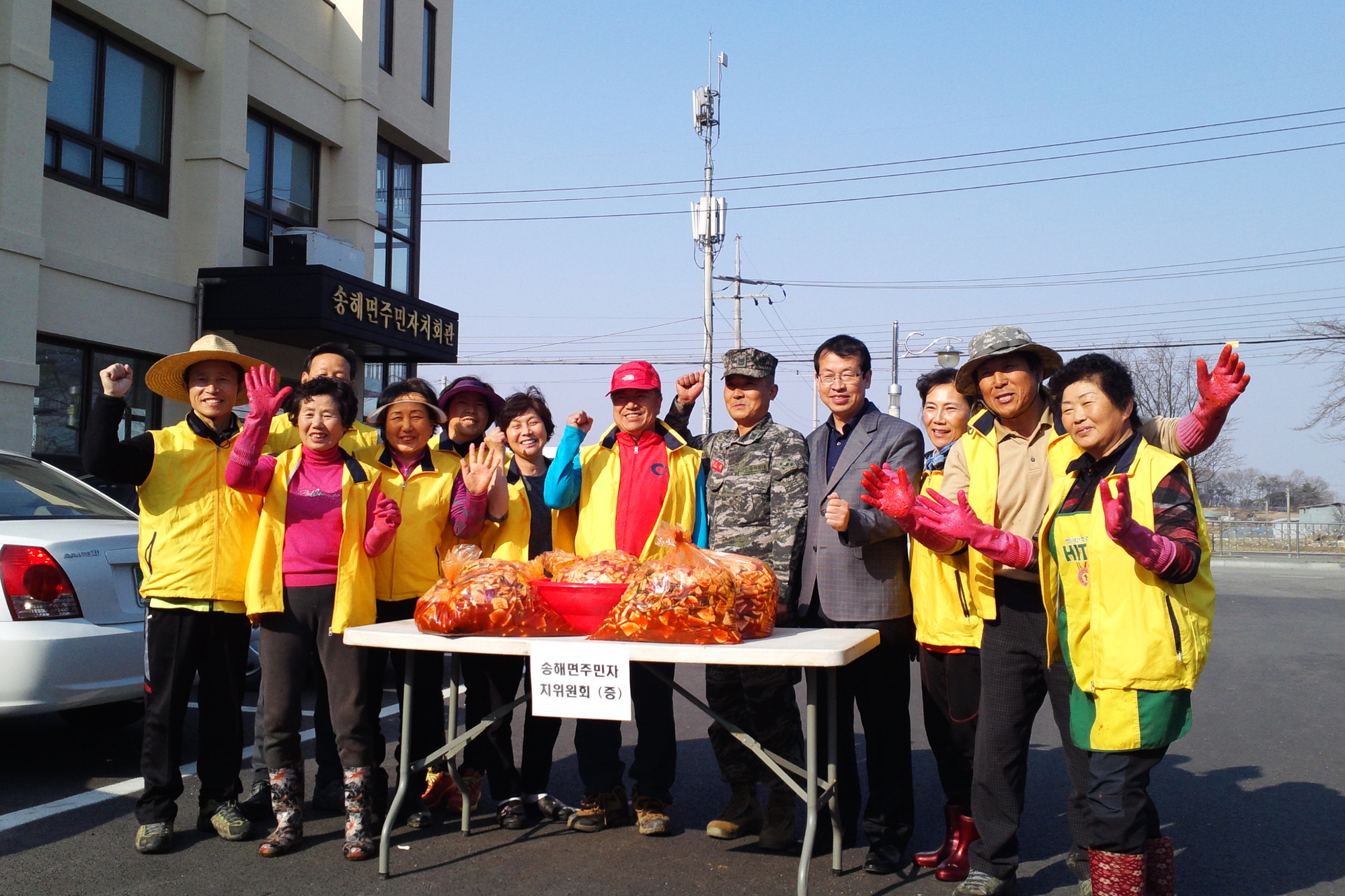 송해면 주민자치위원회(위원장 유호학)는 지난 10일 주민자치위원 20여명이 모여 송해면 주민자치센터 조리실에서 순무김치를 담가 인근 해병부대에 전달하는 행사를 가졌다.