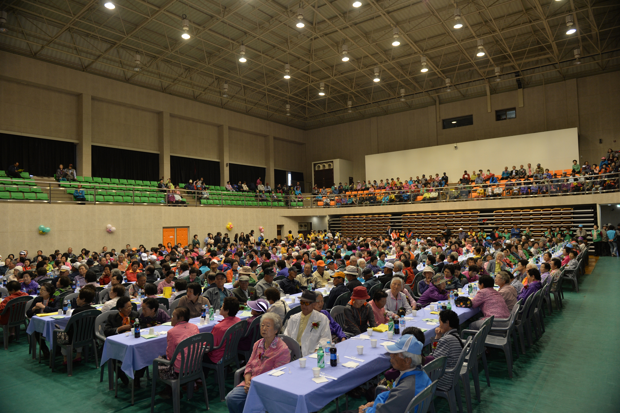 식전, 식후에는 각설이타령, 마술공연, 색소폰 연주, 북한물동이춤, 국악공연, 가수 축하공연 등 다채롭고 흥겨운 무대를 마련하여 어르신들이 모처럼 즐거운 시간을 보냈다.