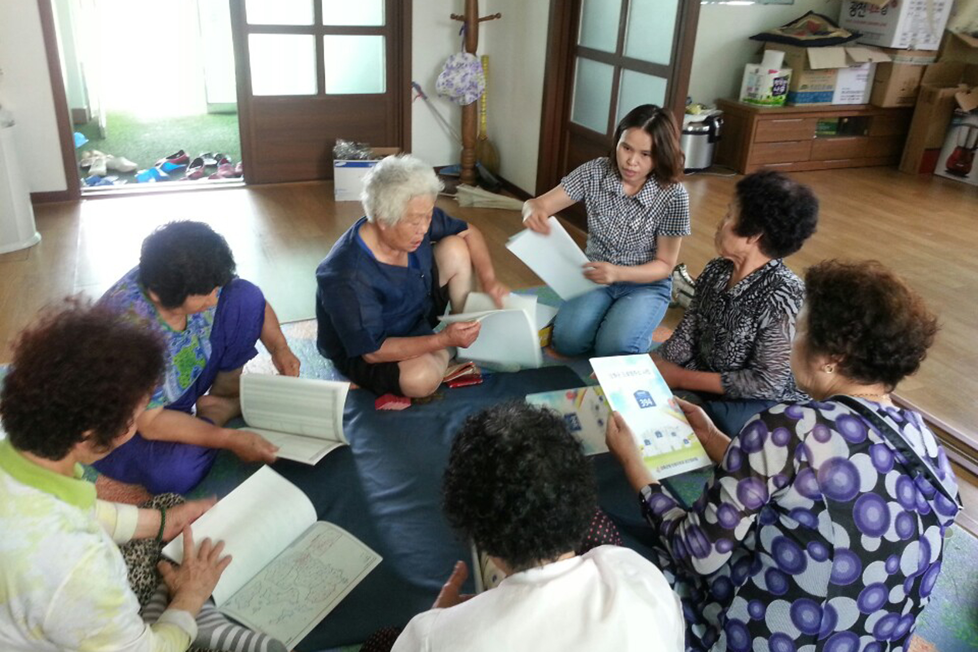 (사진: 경로당에서 “도로명주소 안내 사전”을 배포하고 있다.)