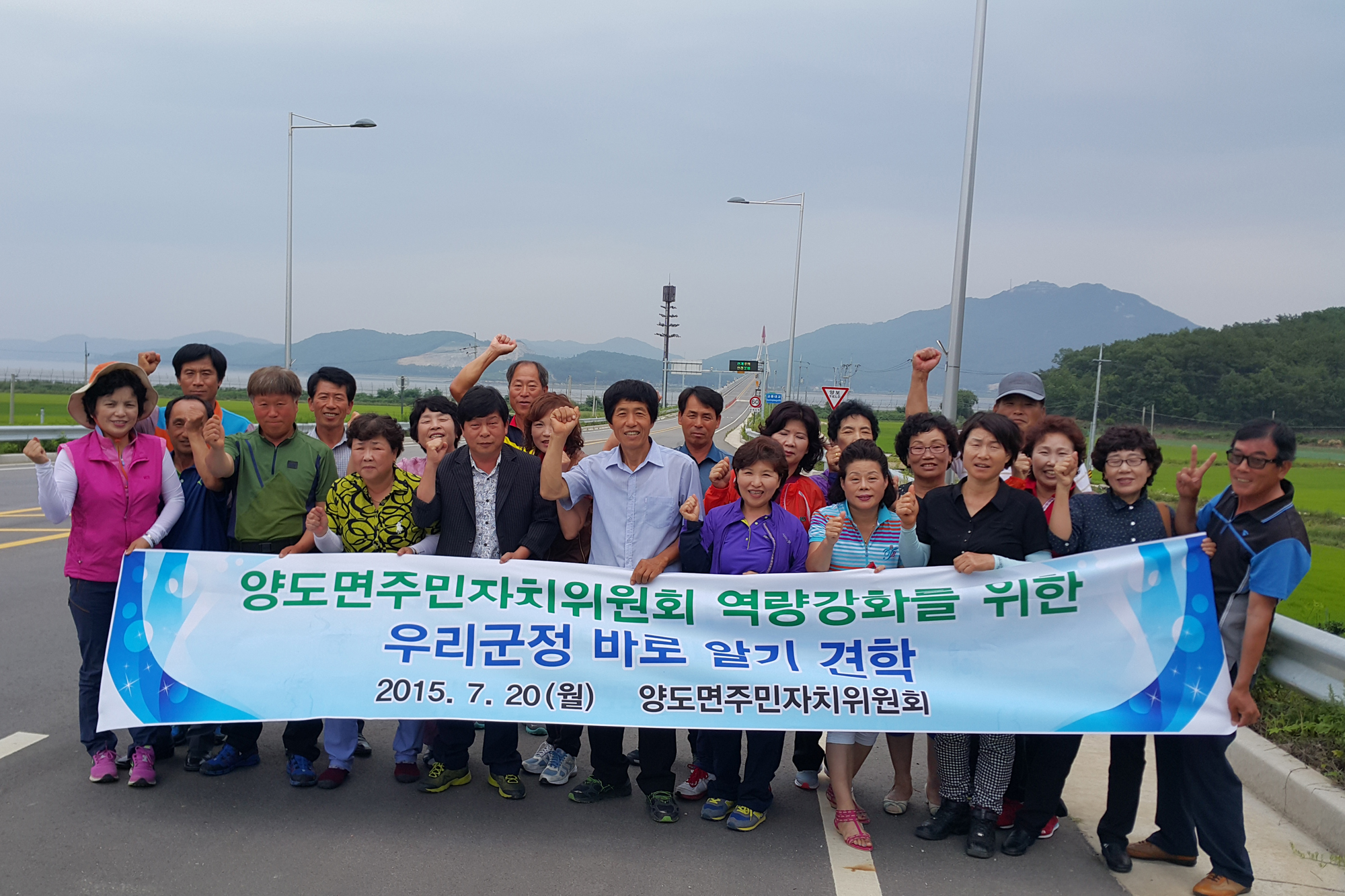강화군 양도면 주민자치위원회(위원장 김옥현)가 지난 20일 강화군 일원에서 ‘주민자치위원회 역량강화를 위한 우리 군정 바로 알기 견학’을 실시해 주위의 눈길을 끌고 있다.