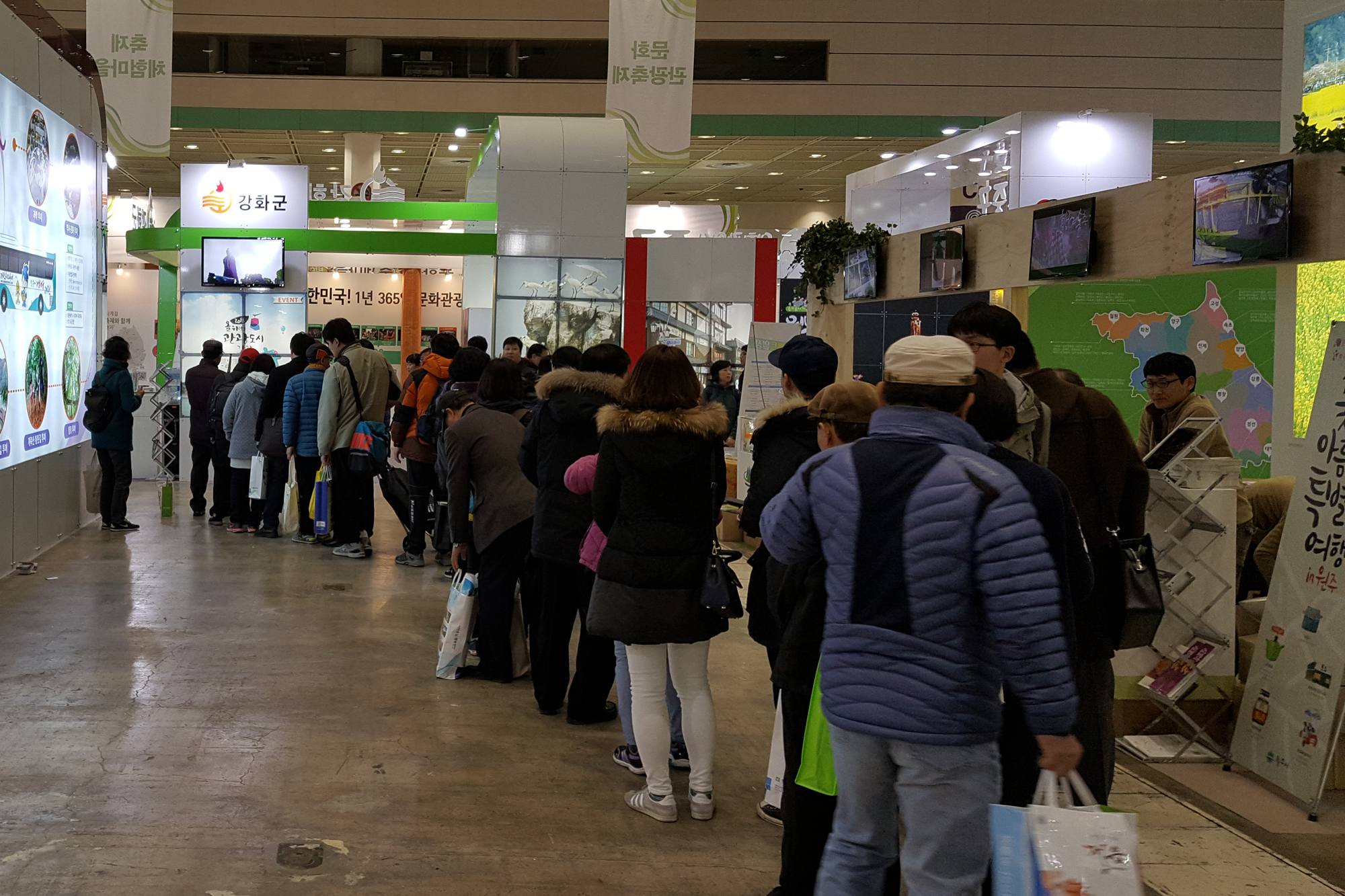 (사진: 이벤트에 참여하기 위해 관람객이 강화군 홍보관에 줄을 서고 있다