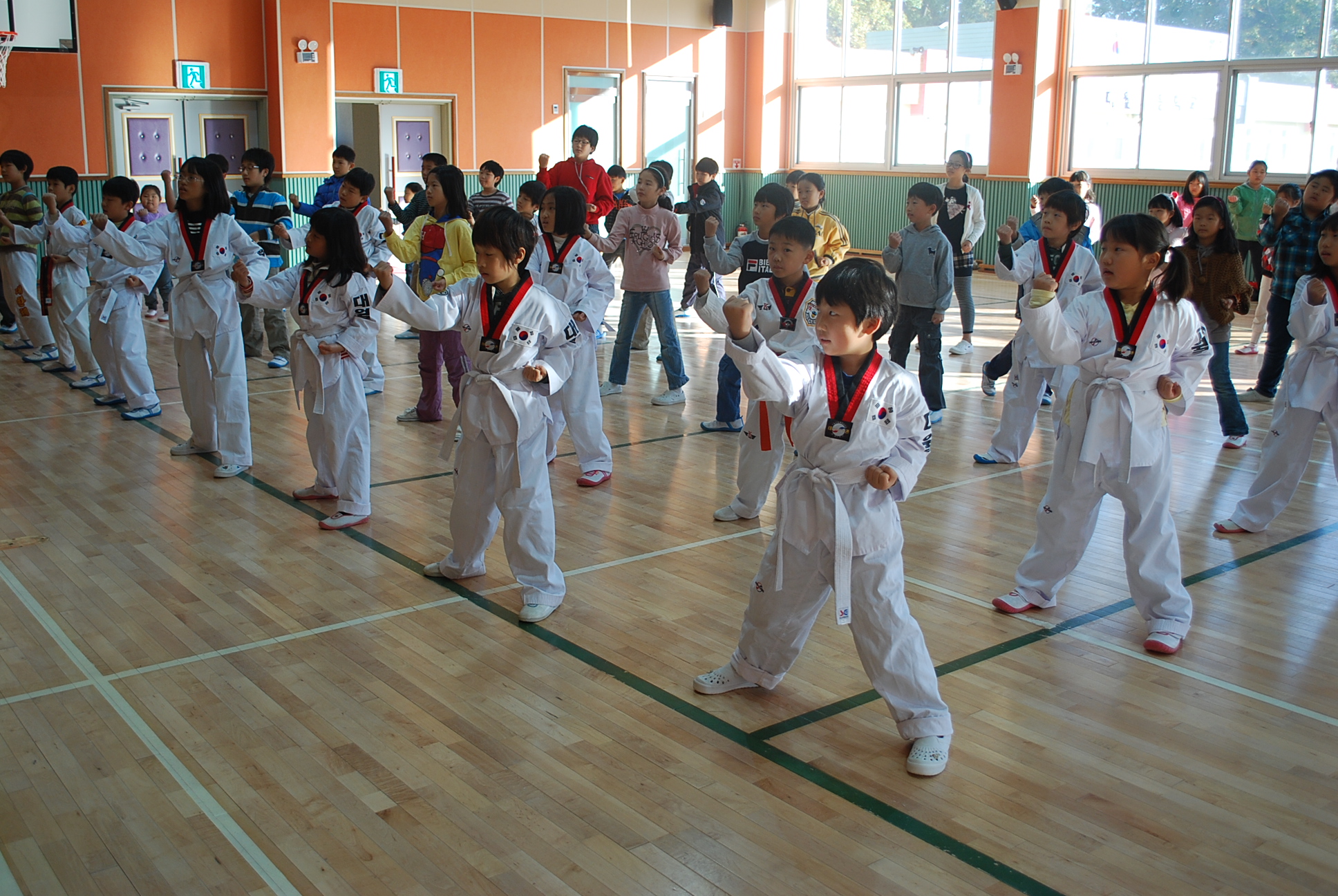 대월초등학교에서 아침 태권도 교실을 운영하고 있다)