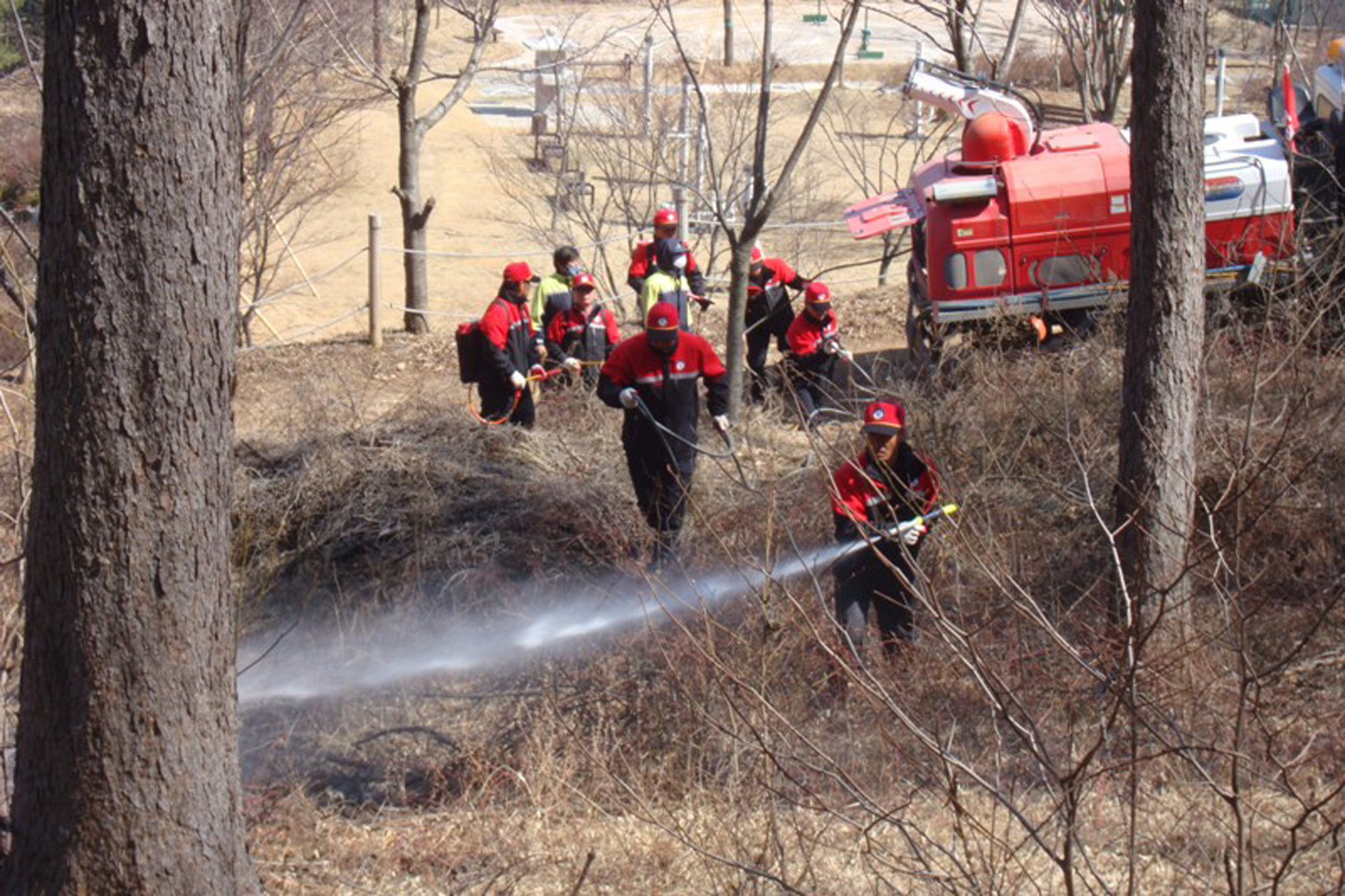 (사진: 산불전문예방진화대가 산불을 진화하고 있다.)