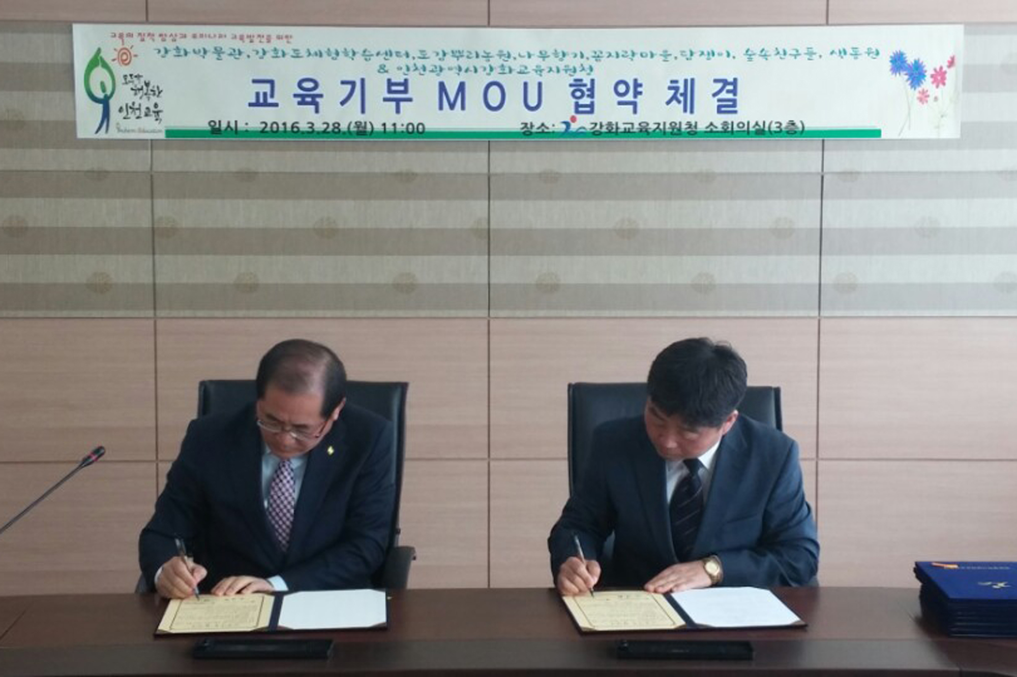 인천시 강화군 강화박물관(관장 조계연)과 강화교육지원청(교육장 정원화)은 지난 28일 인천광역시 강화교육지원청에서 교육 기부 협약(MOU)을 체결했다.