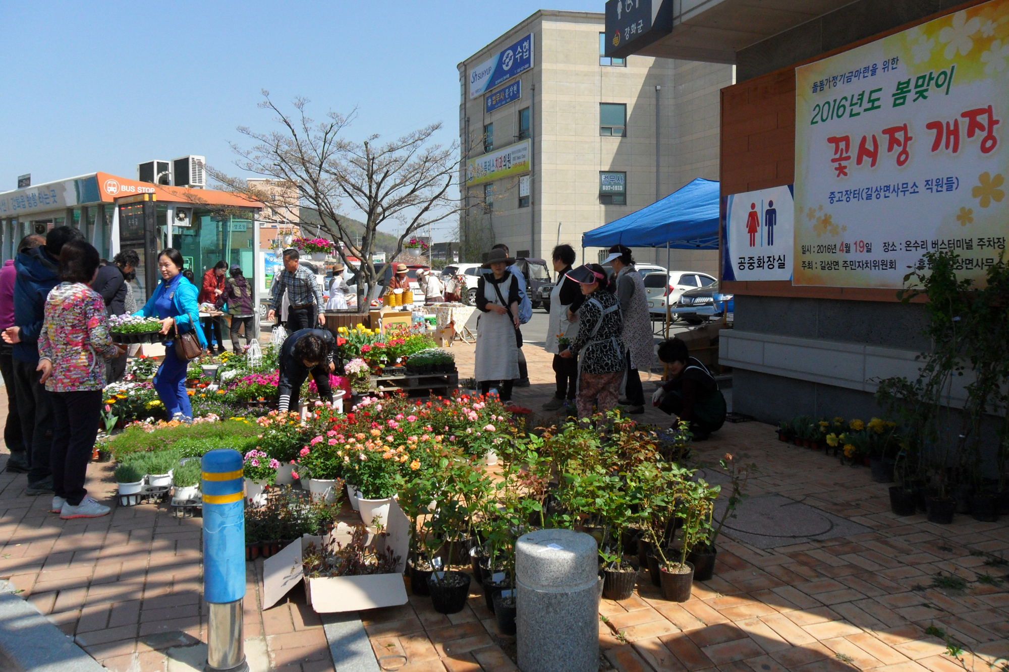 길상면 주민자치위원회가 꽃시장을 열고 있다)
