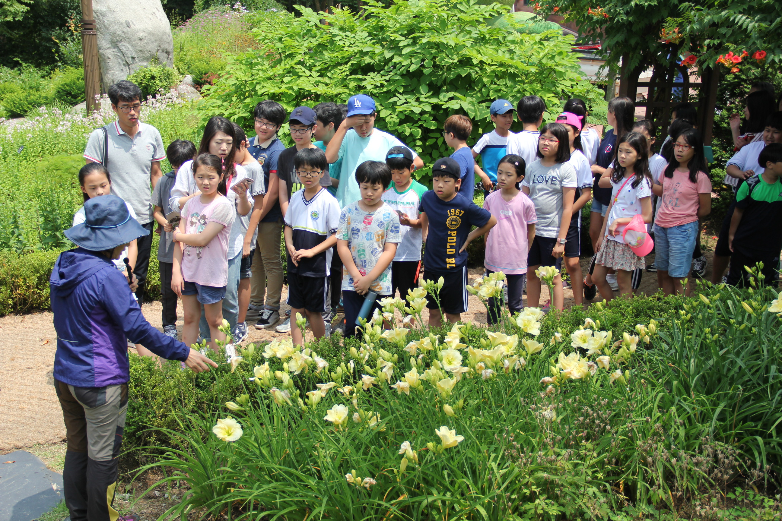 지난 7일 석모도 수목원은 장마철임에도 불구하고 숲 체험 프로그램에 참여하려는 학생들로 붐비었다. 이날 삼산 해명초등학교가 자매결연을 맺은 학교와 함께 석모도 수목원 숲 체험 프로그램에 참여했다. 참가한 학생들은 수목원에 식재 되어 있는 나무들에 대한 이름의 유래, 전설 등 나무이야기와 숲과 나무의 가치, 수목원의 기능 등 다양한 해설을 듣고 매우 즐거워 했다.
