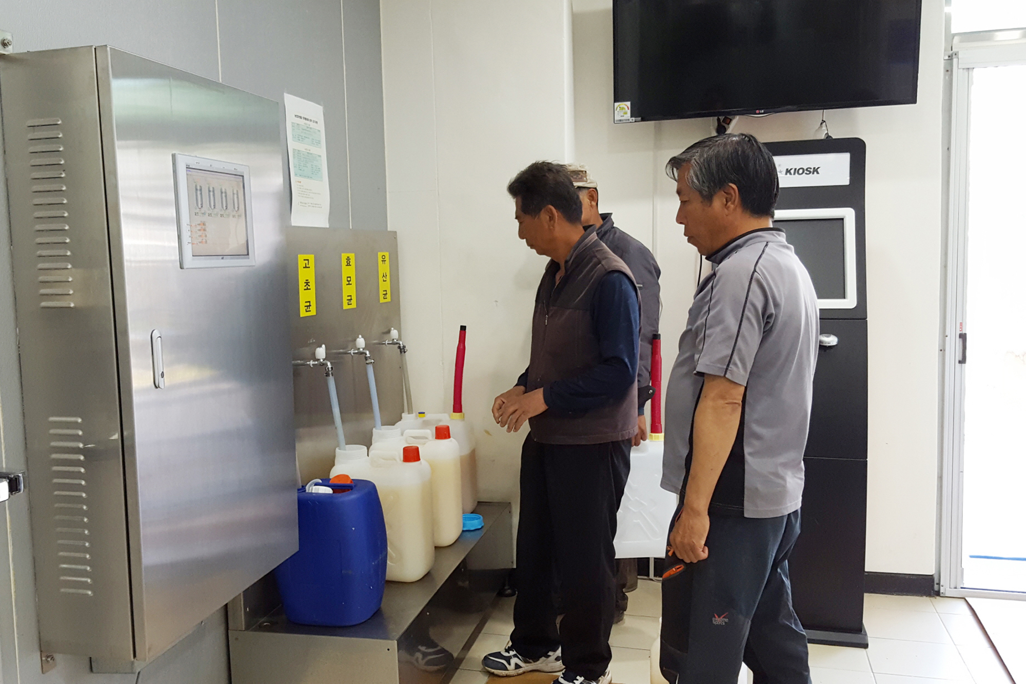 (사진: 강화군농업기술센터 미생물 배양실에서 분양신청 접수 후 미생물을 공급하고 있다.)