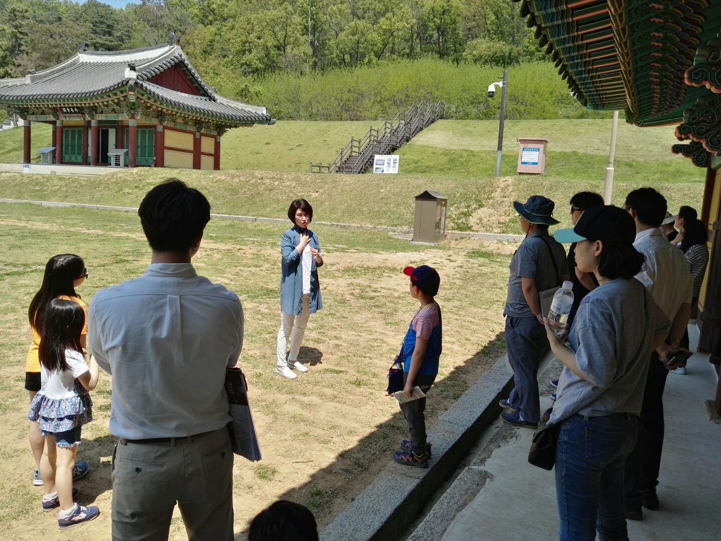 (사진: 강화군문화관광해설사가 고려궁지에서 관광객들에게 해설을 하고 있다)