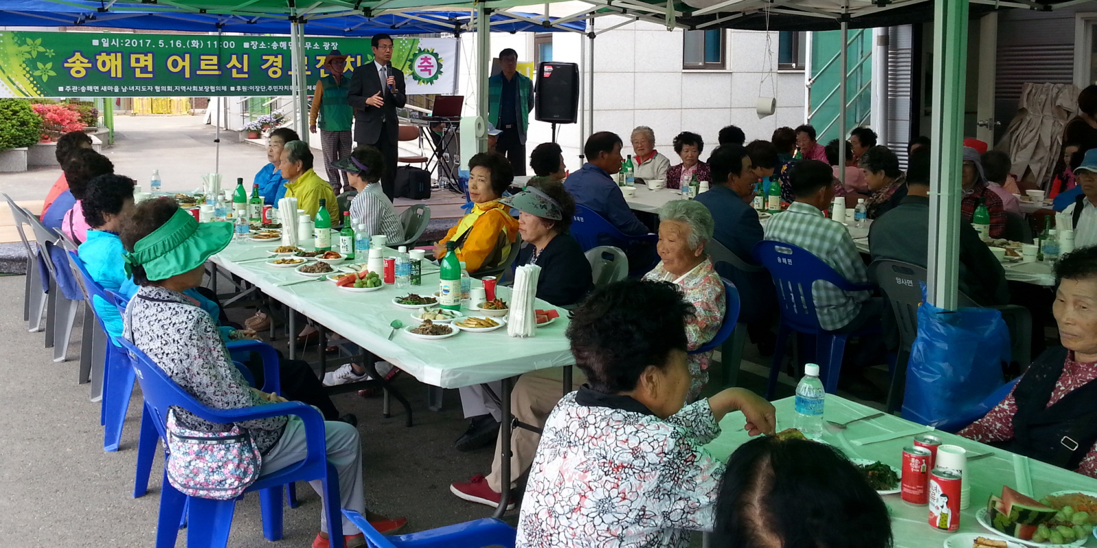 강화군 송해면(면장 한기량)은 지난 16일 송해면사무소 광장에서 새마을남녀지도자협의회(협의회장 장석찬, 부녀회장 추순임) 및 지역사회보장협의체(위원장 이효승) 주관으로 경로잔치를 개최했다.