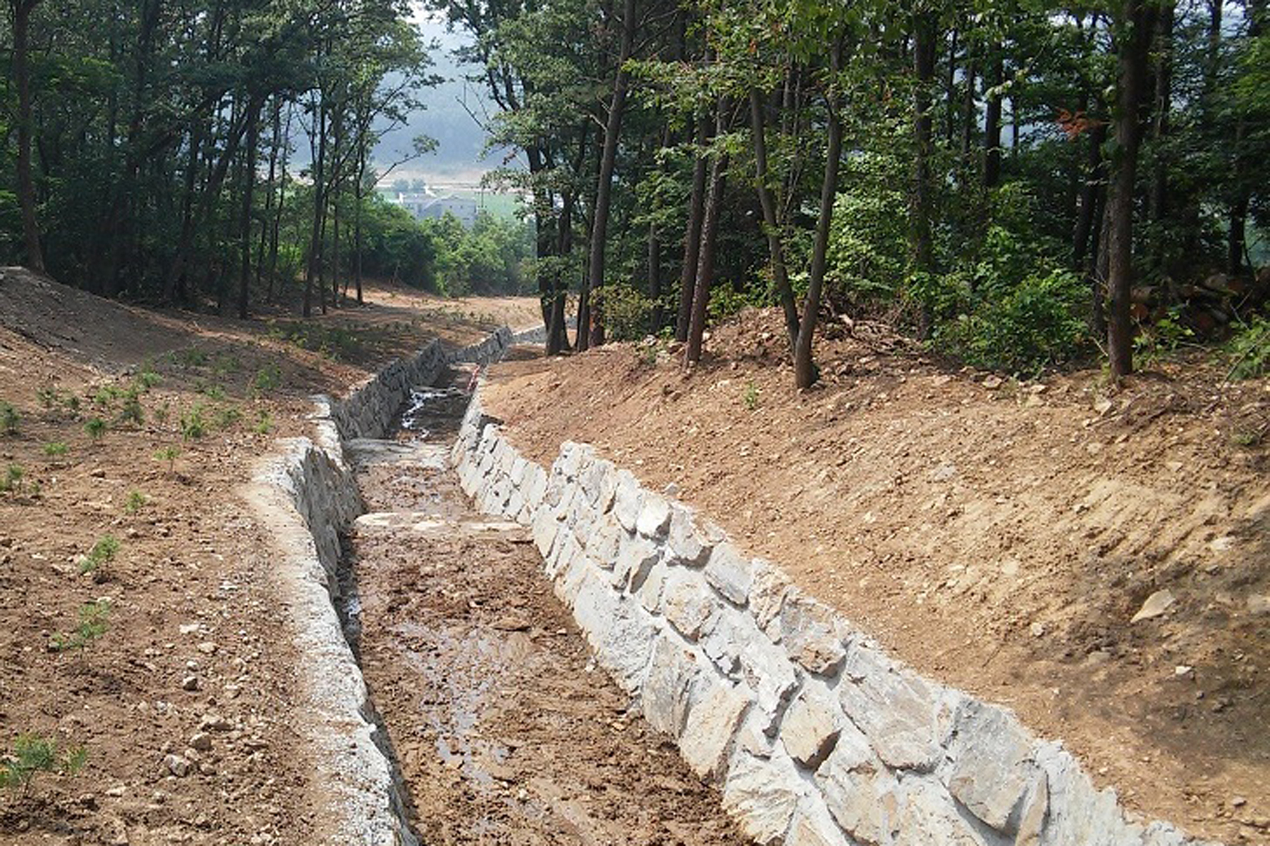 (사진: 산사태 예방을 위해 사방사업 공사가 완료된 현장)