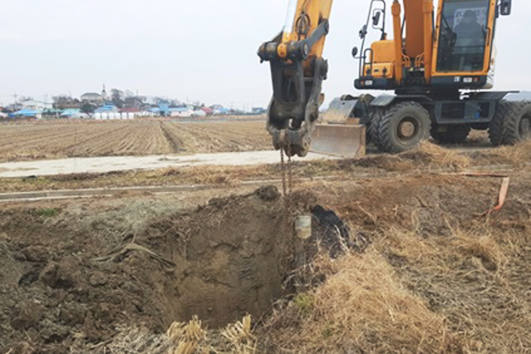 (사진: 지하수 방치공을 폐공처리하고 있다)