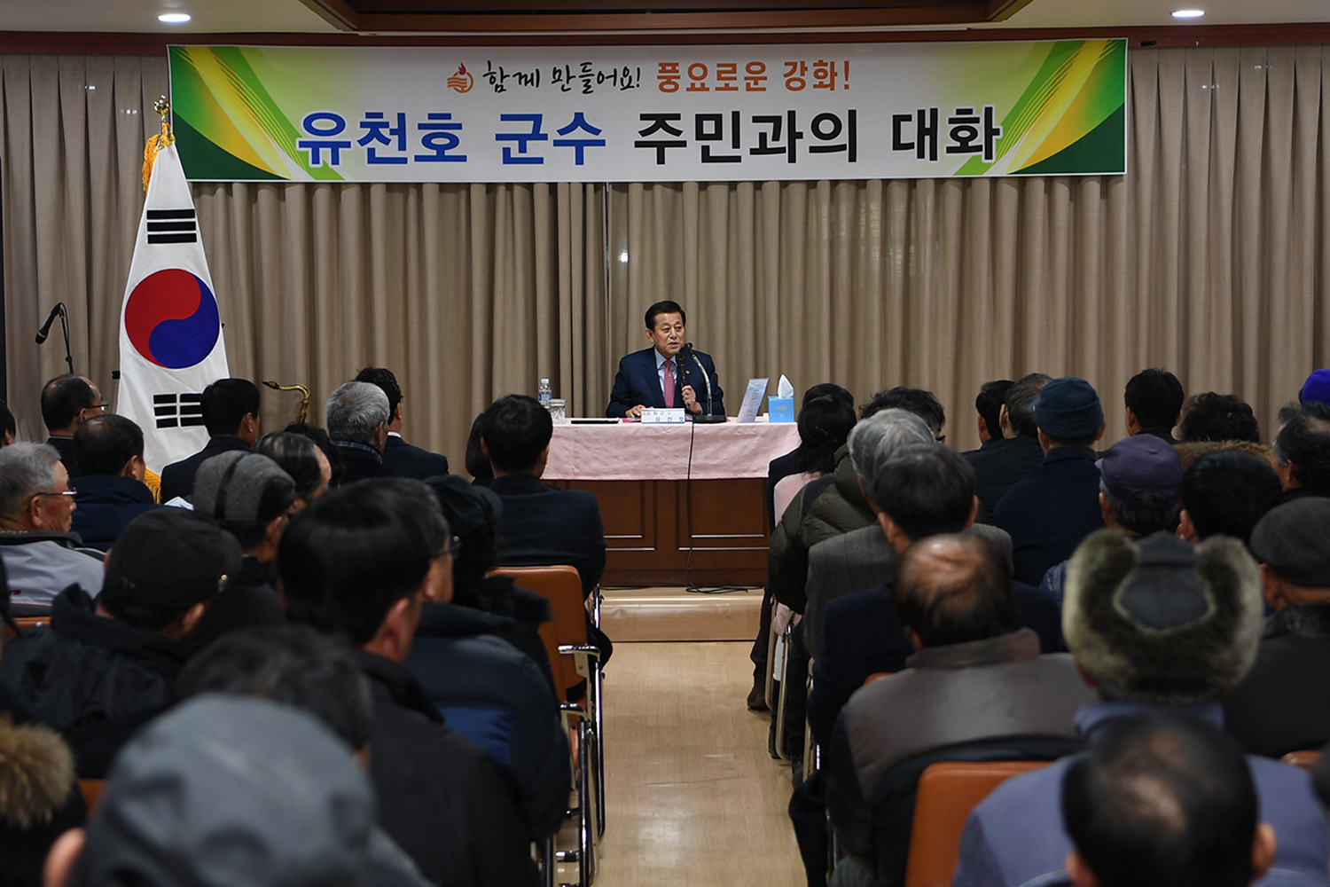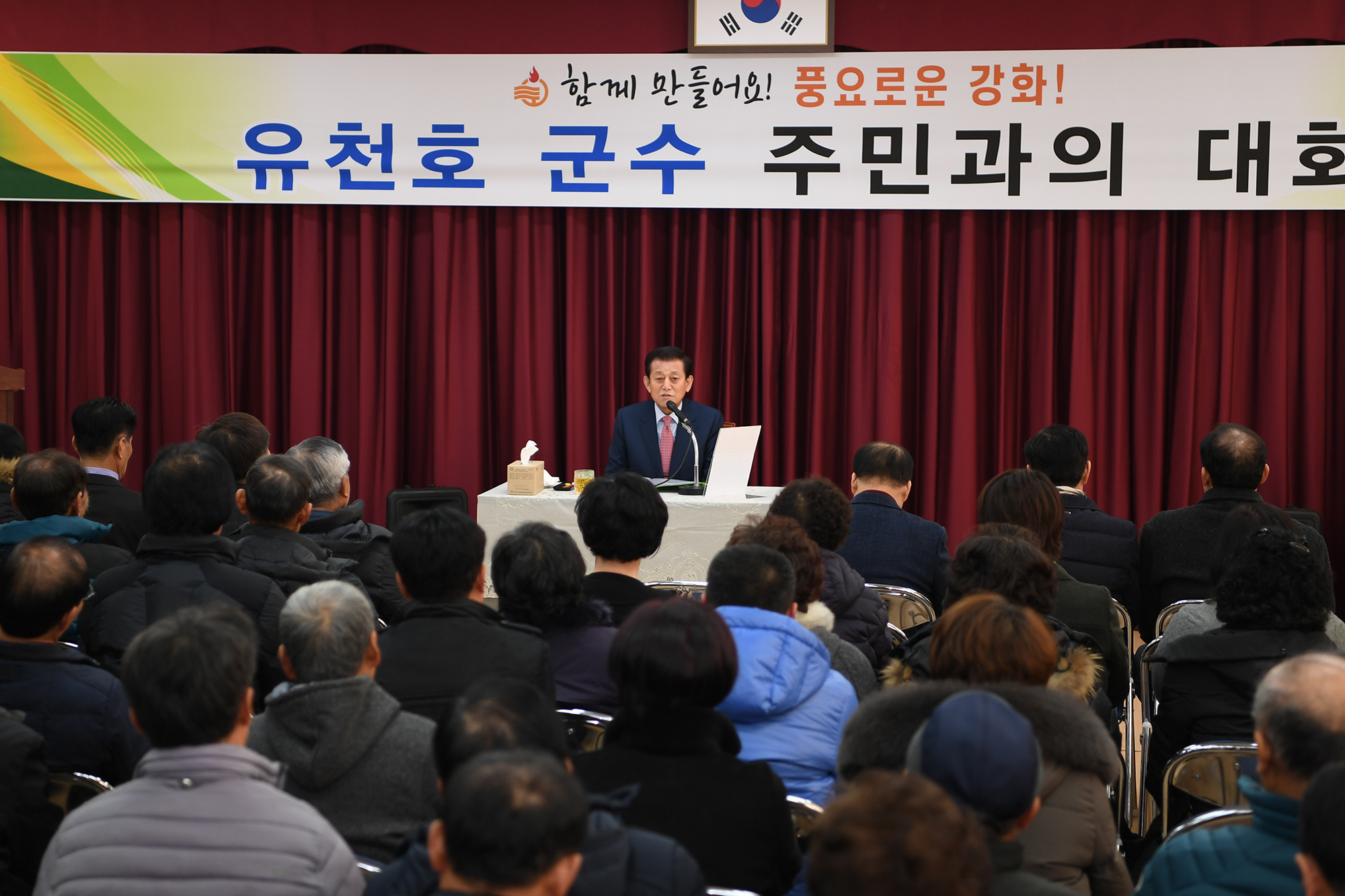 유천호 군수는 “2020년 경자년 새해 첫 출발을 주민들과 함께 하게 되어 기쁘다”며 “주민들과의 대화를 통해 얻은 다양한 의견들을 군정에 적극 반영해 우리 군민들이 행복하고 풍요로운 강화를 만드는 데 최선을 다 하겠다”고 밝혔다.